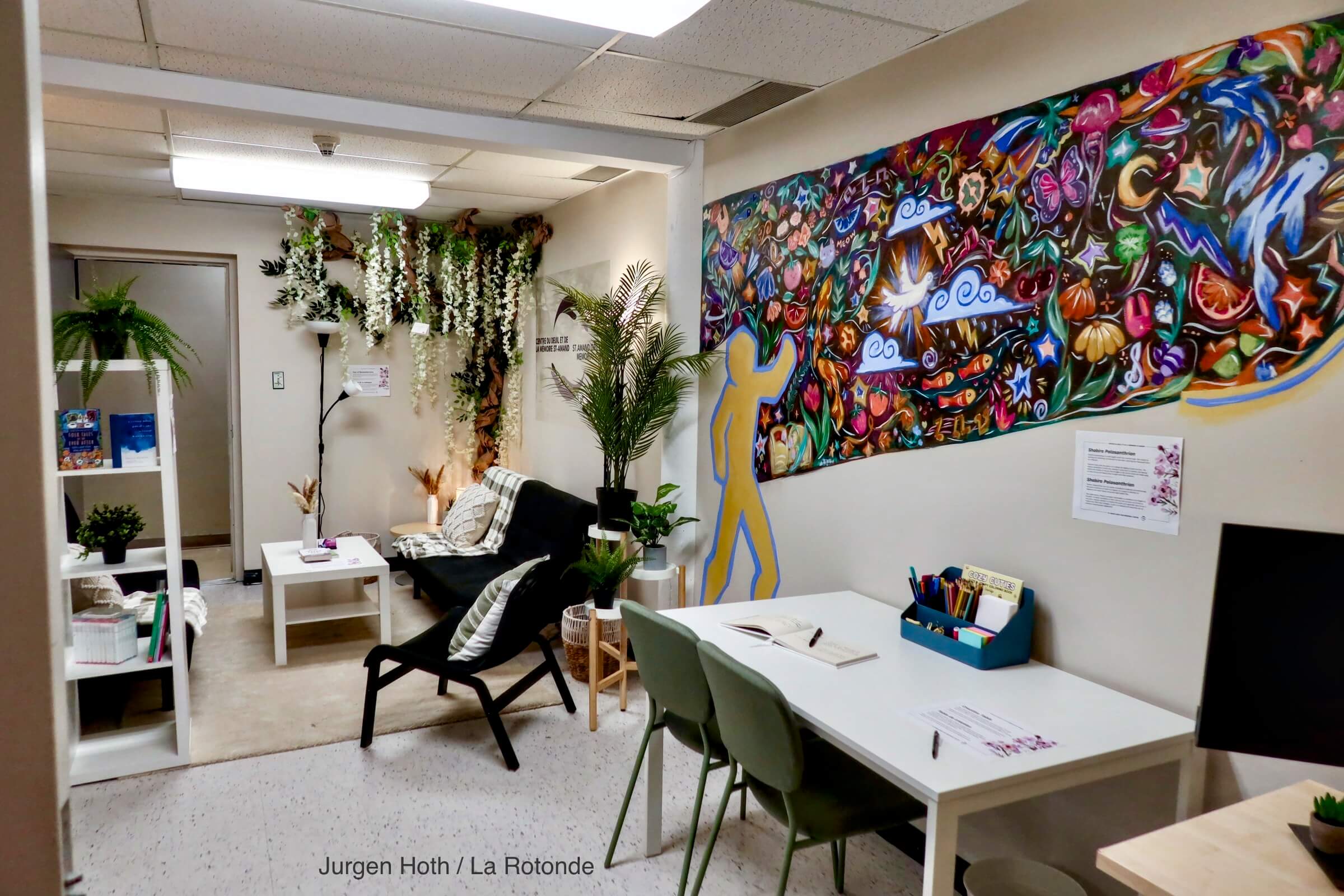 Ce lieu regorge de souvenirs de Marissa St-Amand : ses œuvres d’art, dont le célèbre mur de craie, y sont exposées. On y retrouve également l’arbre de la mémoire, une installation participative où tous les membres de la communauté peuvent inscrire des noms ou des pensées en hommage à leurs êtres chers disparu.e.s, leurs repères, leurs identités ou même leurs sentiments d’appartenance. Pour Messier, « le deuil ne se vit pas seulement à travers la mort. Il peut aussi s’agir d’un éloignement, d’une rupture ou d’un changement profond. L’idée, c’est d’offrir un espace où chacun.e se sent accueilli.e, compris.e. et soutenu.e ».