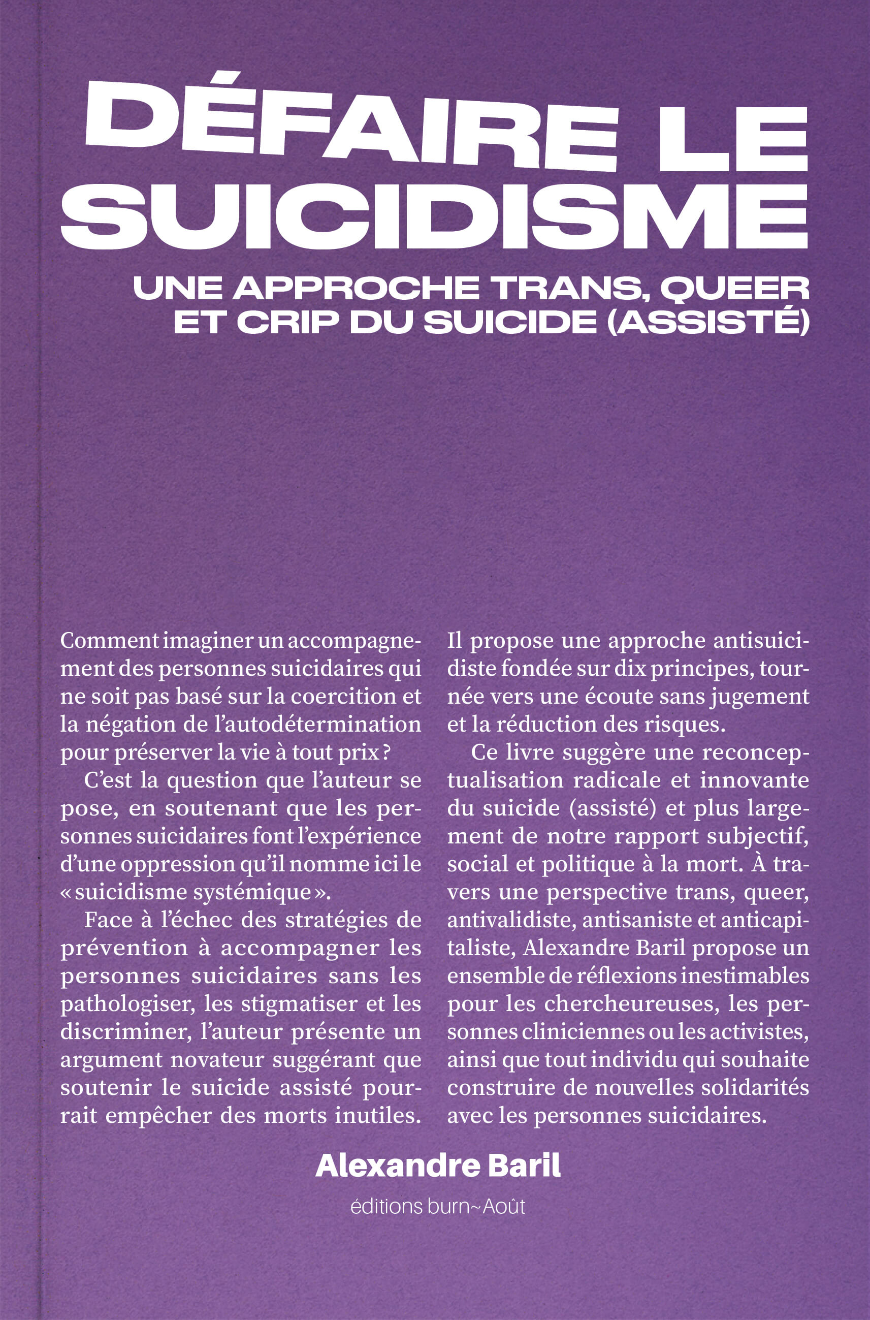 La Rotonde (LR) : Qu’est-ce qui vous a motivé à écrire « Défaire le suicidisme » ? S’agissait-il d’une démarche personnelle, militante ou académique ?